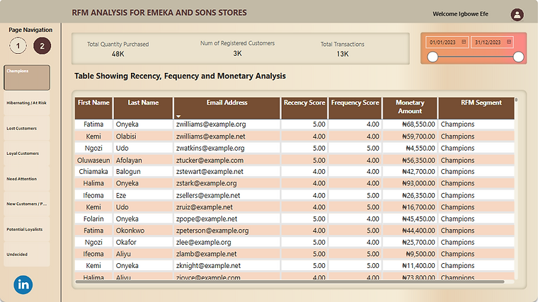 RFM (Recency, Frequency, Monetary) Analysis: Our initial analytical deep dive involved a comprehensive RFM analysis of Emeka and Sons' customer database. This powerful technique allowed us to: